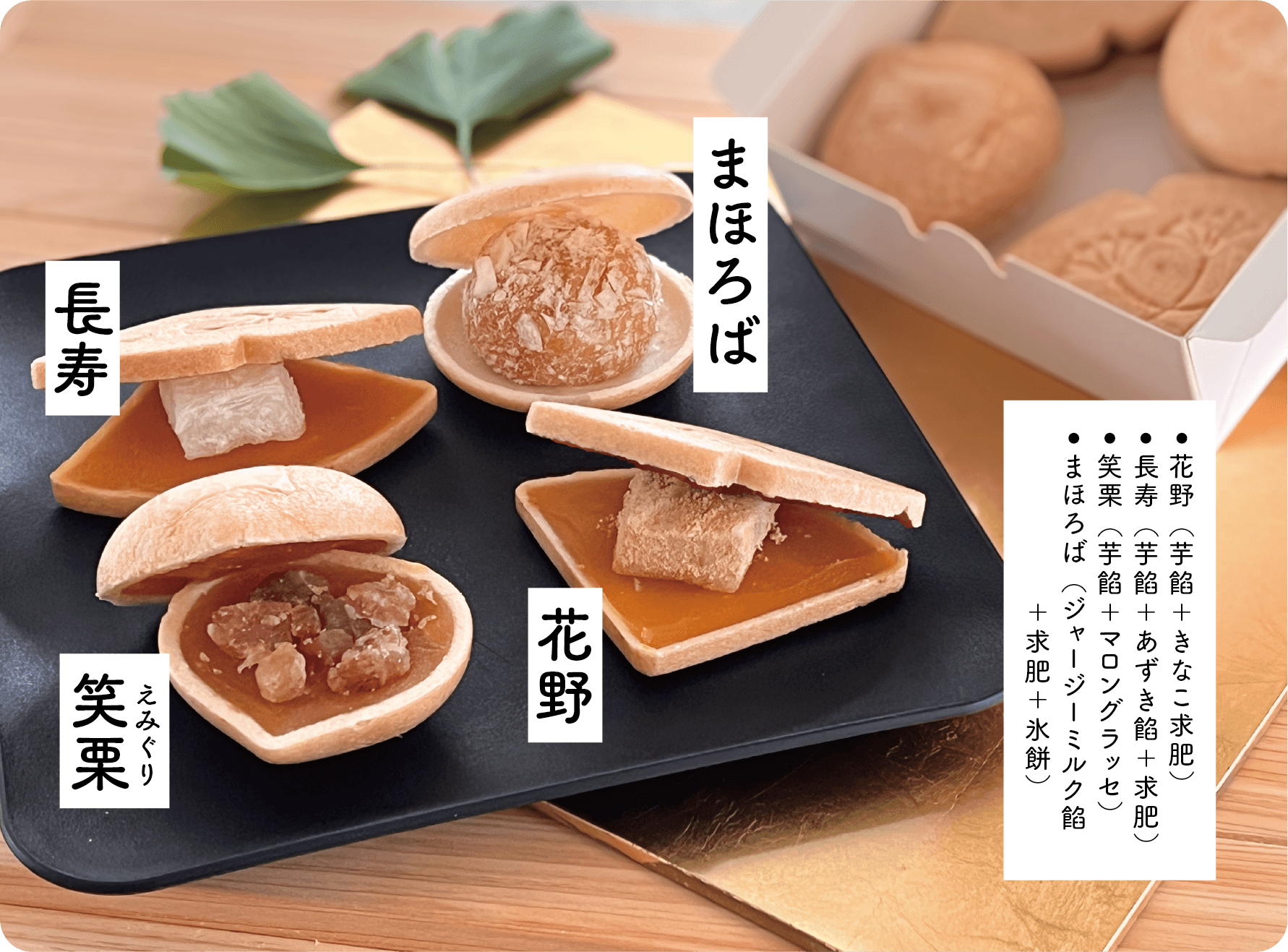 【秋を愉しむもな菓 4種セット販売のお知らせ】 【秋の限定セット販売のお知らせ】 秋を愉しむもな菓4種を詰め合わせました。 ・花野(芋餡+きなこ求肥) ・長寿(芋餡+あずき餡+求肥) ・笑栗(芋餡+マロングラッセ) ・まほろば(ジャージーミルク餡+求肥+氷餅) 1箱 1,040円(税込)…続きを読む