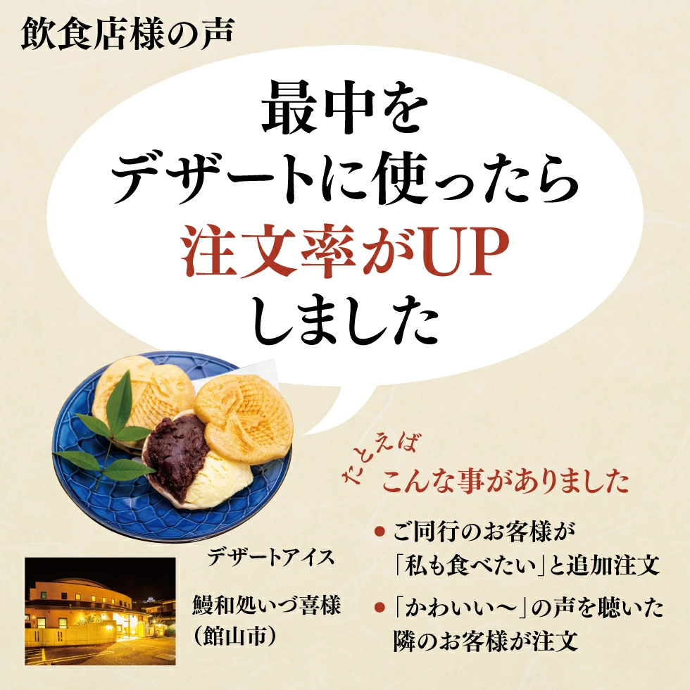 最中の皮は大変壊れやすいため、配送状況により5〜10%程破損する場合があります。本製品はあらかじめ破損分を考慮した価格設定となっておりますことをご承知ください。