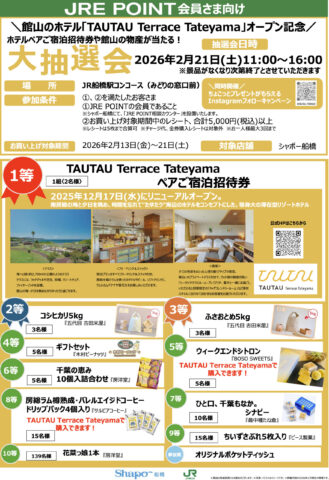 こちらの抽選会では、「TAUTAU Terrace Tateyama」のペアご宿泊招待券をはじめ、南房総・館山のさまざまな商品が用意されています。その一つとして、地域のお菓子としてシナピーを選んでいただきました。